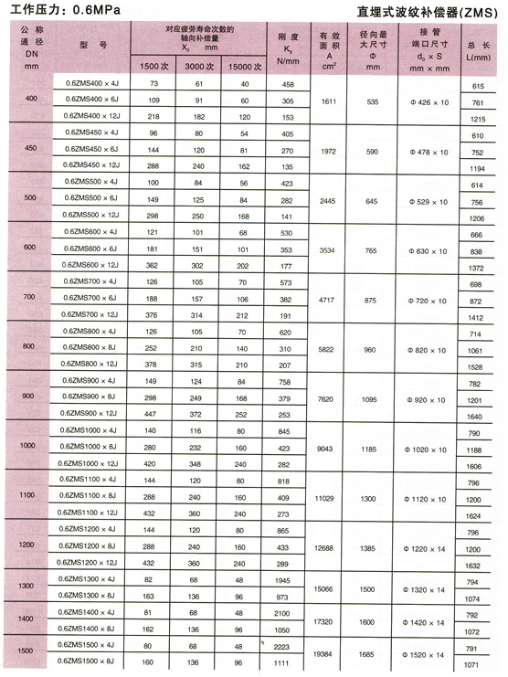 直埋式波紋補(bǔ)償器(ZMS型)參數(shù)2