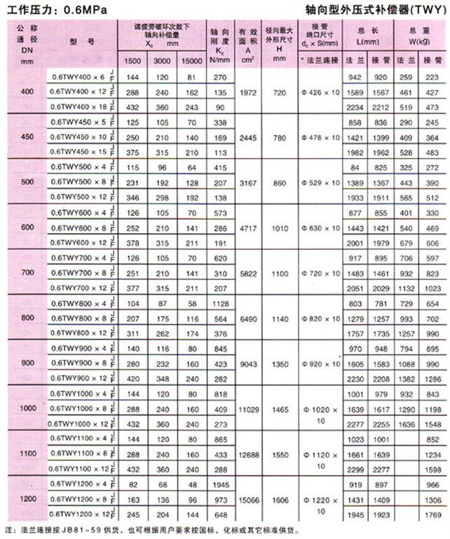 軸向型外壓式波紋補償器(TWY)參數2