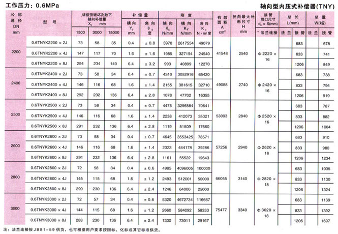 軸向型內(nèi)壓式波紋補償器(TNY)參數(shù)8