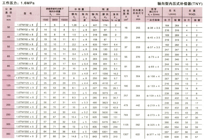 軸向型內(nèi)壓式波紋補償器(TNY)參數(shù)12